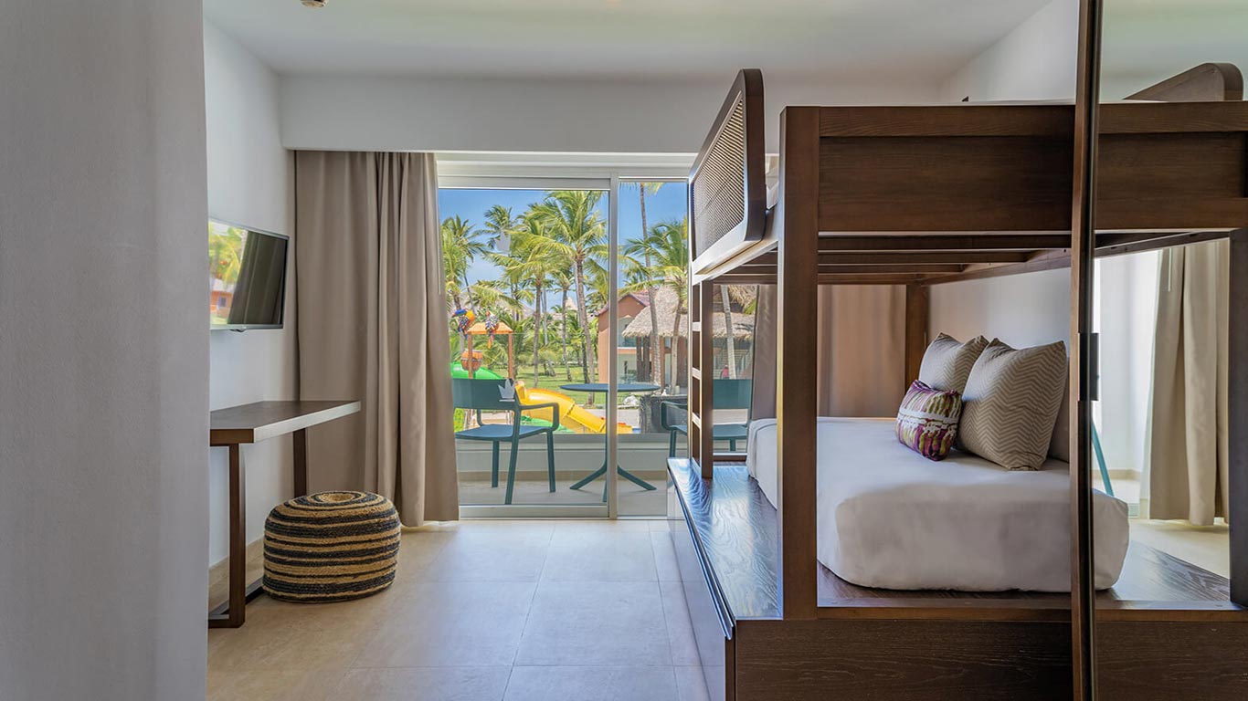 For larger families, the Family Suites atTropical Princess Beach Resort & Spa Hotel has enough space for up to 5 people. These rooms stand out for their size and for their 2 bedrooms: the main one with a king bed and the second bedroom with a bunk bed. Rooms with 2 bathrooms, equipped with Wi-Fi, USB+USB-C connection, minibar, air conditioning, balcony or terrace... *Maximum occupancy: 5 people (2 adults + 3 children or 3 adults + 2 children). *Children 3-12 years old (both included)